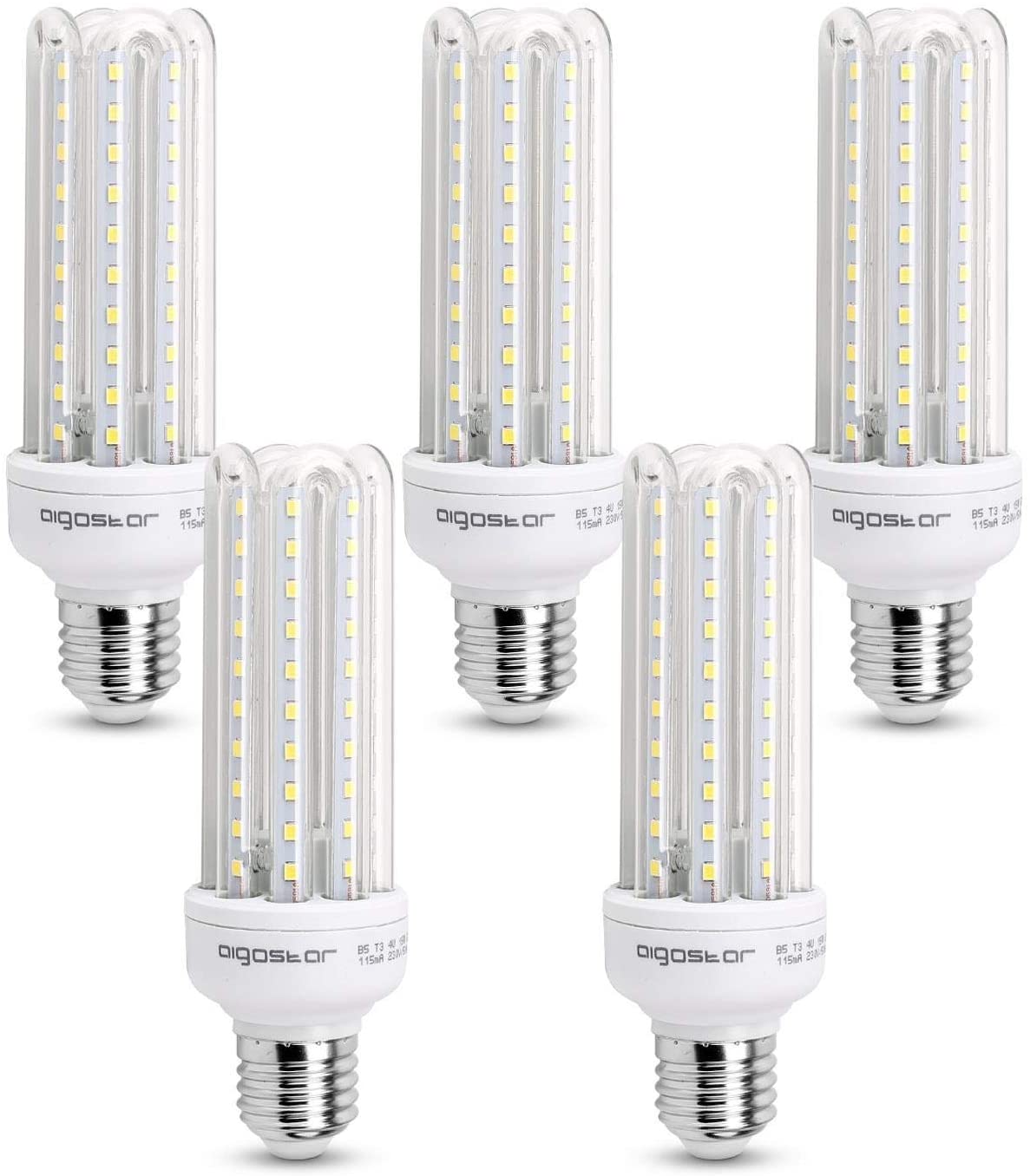Be the first to review “Aigostar – Bombilla LED B5 T3 4U, E27,15W, Ángulo 360°, Luz Blanca Fría 6400K, 1200 lúmenes, no regulable -Pack de 5 [Clase de eficiencia energética A+]” Cancelar la respuesta